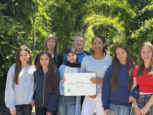 Die Entscheidung traf eine Jury mit Vertreterinnen und Vertretern aus Wirtschaft, Bildung, Hochschule und Elternschaft. Im Rahmen des Auswahlverfahrens präsentierte unsere Schule ihre Konzepte zur beruflichen Orientierung und stellten sich im Gespräch den Fragen der Jury.