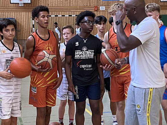 Dass Rickey Paulding durch die Halle an der Ronzelenstrasse dribbelt und Anweisungen ruft, geht unter anderem auf die Basketball Akademie Bremen-Süd zurück. Sie zählt sowohl die Sportbetonte Oberschule als auch die EWE Baskets zu ihren Partnern. Akademie-Leiter Dejan Stojanovski pflegt einen guten Draht zu Paulding, der nach seinem Karriereende 2022 nach 15 Jahren bei den EWE Baskets mit seiner Familie zurück in die US-amerikanischen Heimat zog. Mehrmals im Jahr kommt der 40-Jährige jedoch nach Deutschland. Etwa, um die Trainingsleitung der Feriencamps, die Stojanovski mit einem Tochterverein der Baskets in Bremen organisiert, zu übernehmen. „Die jungen Spieler sollen einen ehemaligen Profi hautnah erleben“, sagt der Akademie-Leiter. Dadurch merkten sie, dass Paulding ein Mensch sei wie sie auch, gleichzeitig könne er dem Nachwuchs „das gewisse Etwas mitgeben“.